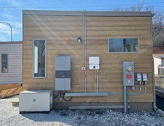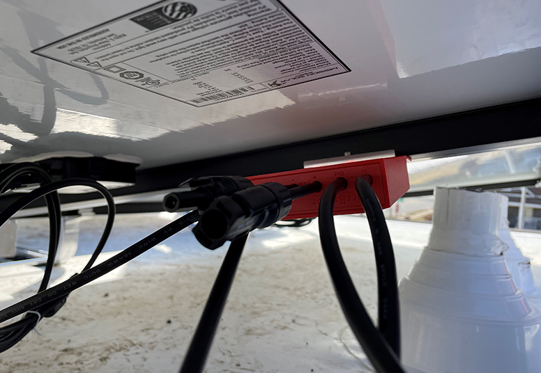 For the current Solar Decathlon, the University of Illinois have built Adapthaus. As well as providing energy efficiency, the engineering team have also created an exceptionally safe home by deploying our donated FireRaptor rapid shutdown devices for all of the solar panels mounted on the Adapthaus roof, with an additional emergency shutdown switch located at ground level. As the solar panels used did not exceed the maximum 350W input power, they were able to install the FireRaptor in a configuration of 2 panels for every one FireRaptor, and thanks to the plug-and-play nature of the FireRaptor, installation was quick and easy and is now fully compliant with NEC2020 safety recommendations.